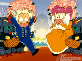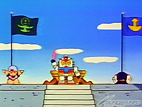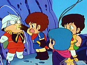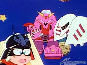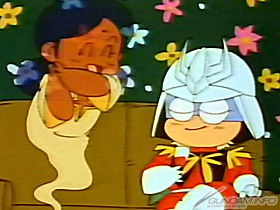 『第一部・激鬥篇 高達能立於大地嗎!?』當中,本篇中為人熟知的MS(MOBILE SUIT)們一個接著一個化為SD角色登場。揮動蒼蠅拍戰鬥,充滿魄力的戰鬥場景(!?),以及出現好幾次氣氛非常微妙的“EYE CATCH!”連續攻撃,變成亡靈角色的拉拉連想也不想就看不見未來了(笑)。話雖如此,現在看來可是很珍貴的作品,兼具悠閒搞笑以及80年代動畫風格的 感覺反而非常有新鮮感而讓人迷上啦~。