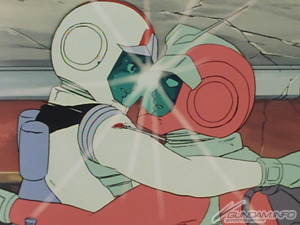 再加上到了第40話『愛美號的拉拉』,阿姆羅已經有可以在宇宙空間當中斬下馬沙搭乗的格魯古古左腕程度的實力! 而說到馬沙這邊,因為先前一直在對薩比 家復仇的血路上前進的關係(?),想要幫忙卻被初次參加實戰的拉拉當成在扯後腿,最後落到得抓著愛美號(拉拉駕駛中)的尾巴逃離戰線的悲慘狀況(?)。 這次換馬沙淪落到悲慘的下場了(←倒不如說,新人類能力覺醒後的阿姆羅實在太強了?)。