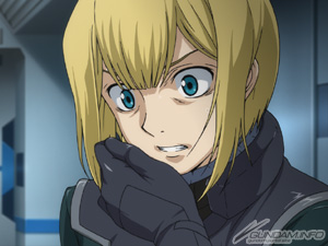 以一頭美麗銀髪給人深刻印象的她,是人類革新連盟(通稱:人革連)所屬的士官MS駕駛員。