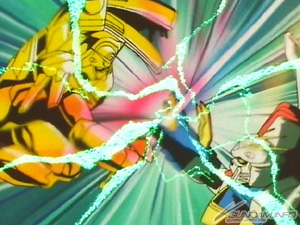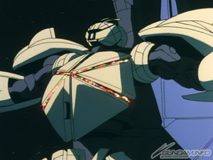 胸部的X型傷痕,據說是過去與∀高達對戰時留下的,也可以看出這兩台機體之間的糾葛有多深,最後果然是與∀高達同時發動月光蝶系統,導致雙方都無法動彈只能落下地面,在這之後(不知為何)劇情走向駕駛者開始互相拿著日本刀對砍的驚人發展……。