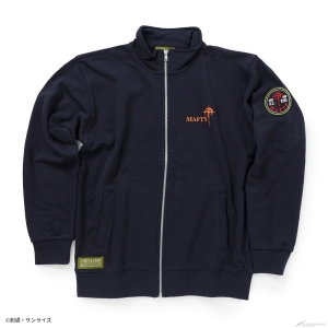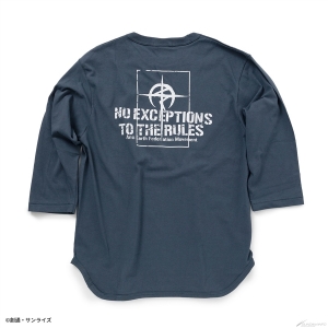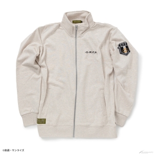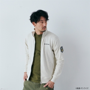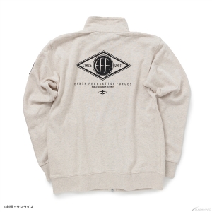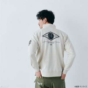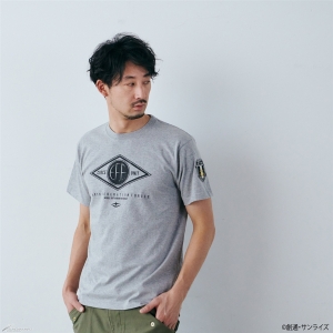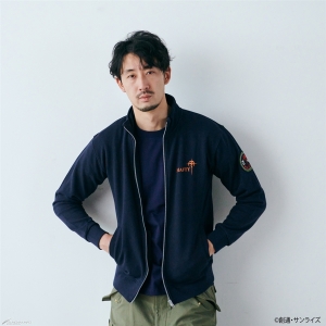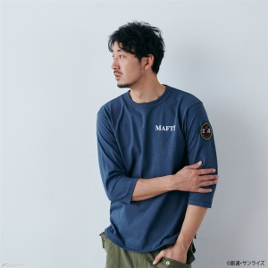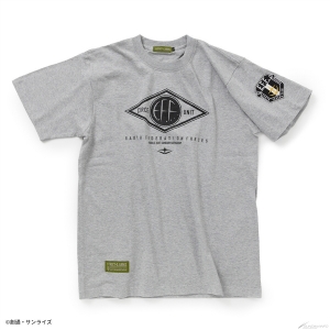 品項分別是使用海軍藍堅固布料,袖子帶有MAFTY主題刺繍徽章,正面印有軍武主題圖案的MAFTY款式,以及條紋灰為基底,袖子帶有E.F.F.樣式的刺繍徽章,正面印有地球聯邦軍「喀耳刻部隊」主題軍武圖案的E.F.F.款式。徽章採用磨損表現的印刷手法,呈現出簡約而有主張的設計。