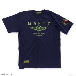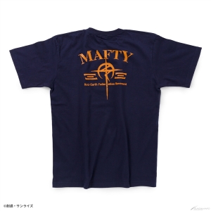 品項分別是使用海軍藍堅固布料並搭配顯眼橘色MAFTY主題設計的MAFTY款式,以及在卡其色布料搭配地球聯邦軍「喀耳刻部隊」主題設計的E.F.F.款式。正面左胸口的點綴設計和後背印刷採用磨損表現的印刷手法,展現軍武風格,這些款式容易搭配,是非常實用的單品。