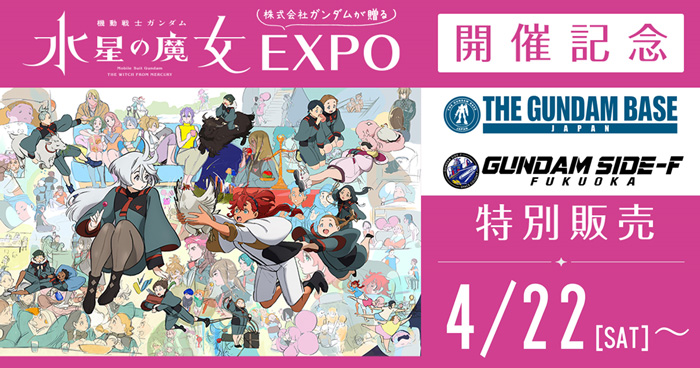 「機動戰士高達 水星的魔女EXPO」舉辦紀念特別商品,將於本周末4月22日(六)起,在高達模型綜合設施「THE GUNDAM BASE」(高達基地)各門市和福岡・GUNDAM SIDE-F舉行特別販售。