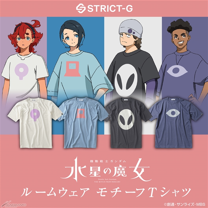 「『機動戰士高達 水星的魔女』居家造型T恤」4款,將於將於8月19日(六)由採納高達世界觀的成衣商店「STRICT-G」發售。售價為各6,600日圓(含稅)。