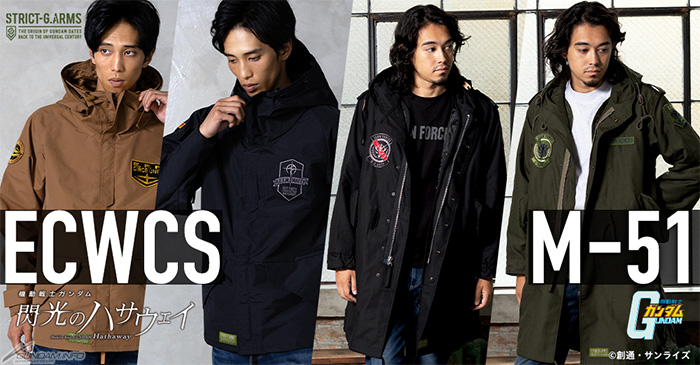 本次的新系列外套主題來自『機動戰士高達 閃光之凱薩衛』和『機動戰士高達』。推出的品項方面,『閃光之凱薩衛』為2款特製版「ECWCS PARKA」、『機動戰士高達』為2款「M-51 PARKA」。