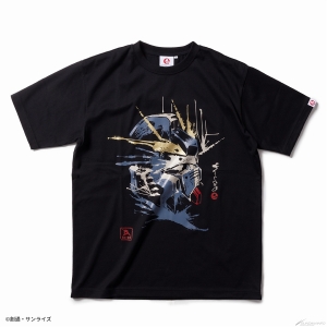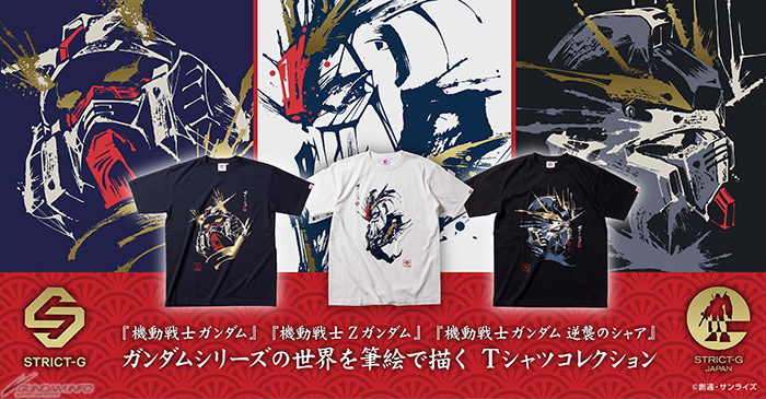 為了傳播・推廣日本國產產品・設計所擁有的魅力,編織出全新價值觀而誕生出的系列「STRICT-G JAPAN」,「筆繪風側臉T恤」的新作登場。筆繪風以和風的圖案描繪MS側臉的短袖T恤,採用金色印刷表現出華麗感。。