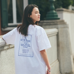 布料使用觸感粗曠,以乾燥質感為特徵的USA棉布。5.8OZ的中厚度衣身,以衣大身側面沒有縫線的筒狀衣身來減少對肌膚的干涉。是款對穿著感更加講究的逸品。