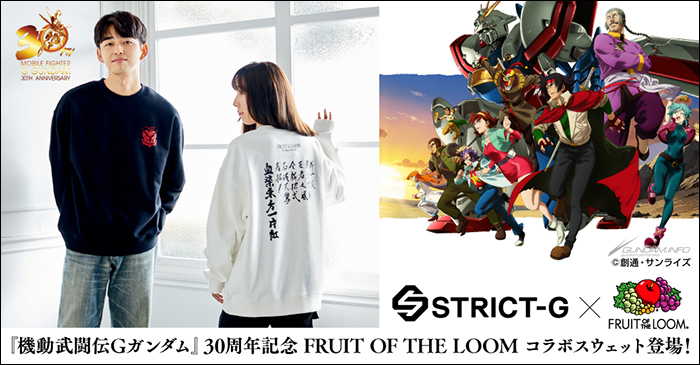 採納高達世界觀的流行服飾商店「STRICT-G」與美國知名基本款服飾和內衣品牌「FRUIT OF THE LOOM」合作推出4款「『機動武鬥傳G高達』衛衣」,今日9月19日(四)13:00起開放預購。價格為各9,680日圓(含稅)。