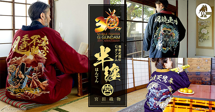 為紀念『機動武鬥傳G高達』30週年,和創業超過百年的福岡縣筑後市木綿織物製造公司「宮田織物」聯名的棉襖半纏登場。