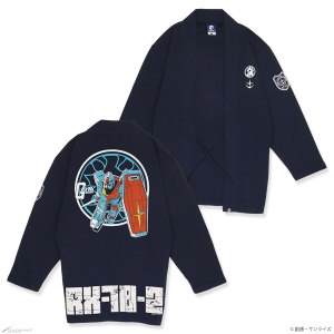 以火消魂代表商品「半纏(HANTEN)」為基礎,將「RX-78-2 高達」以數位鐳射加工呈現。使用方便融入日常的丹寧材質,火消魂原創DENIM HANTEN。以現代也能穿用的和服為概念,將袖管收窄,重新建構。