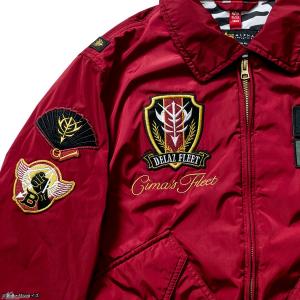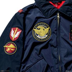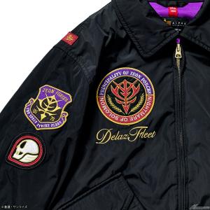 「阿納貝爾・賈圖款」,附在正面左右與右邊袖子的部隊相關紋章印布營造出高達世界感。配置在左胸口的皮製燙布可藉由拉鍊拆裝,背後內側則印有Delaz Fleet的LOGO。