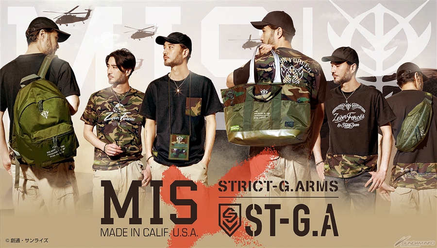 本彈是對應美國國防部制定的軍用基準(MIL-SPEC)的加州指定工廠生產,於美國・LA品牌「MIS」合作的包包共有6種,以及使用了迷彩圖樣工標誌款式的T恤共3種。