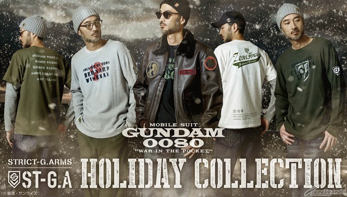 新收藏系列將依序推出『機動戰士高達0080 口袋裡的戰爭』的「G-1・皮革飛行夾克」及「口袋T恤」、「格紋長袖T恤」、「連帽衫」等流行服飾商品。
