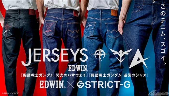 結合高達世界觀的流行服飾品牌商店「STRICT-G」,3月5日(六)起代表日本的國產牛仔褲品牌「EDWIN」,將發售『機動戰士高達 馬沙之反擊』『閃光之凱薩衛』的聯名牛仔褲。