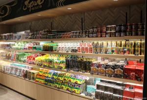 古谷徹一邊驚訝著品項之多,一邊對與全日本當地食品聯名的”JAPAN FOOD COLLECTION”產生興趣,笑著說「有點在意這個七味粉呢。我是神奈川出身的,所以希望可以出高達的燒賣啊~!」。