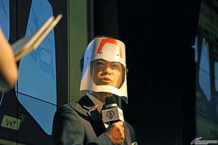 典禮上,古谷徹戴著阿寶造型的防護面罩登場,關於防護面罩的感想,他秀了一手表演「這時候就想說那句台詞呢…『阿寶、高達、出發了!』」。
