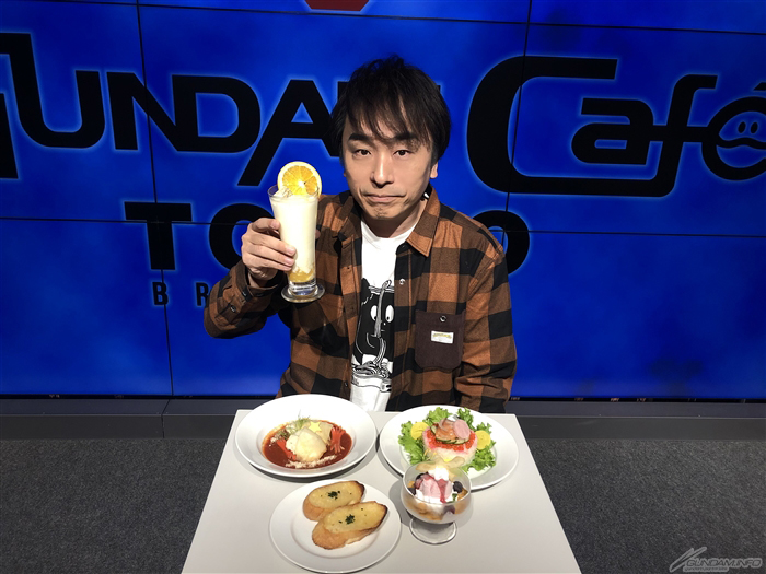 關智一這次是第一次來到重新開幕的GUNDAM Café TOKYO,體驗了本設施的「Zeon’s Diner TOKYO」及週邊商品專區後,對各式各樣的小巧思表示「店裡充滿了全新的可能性」。另外,關於能夠互動享受其中樂趣的本晚餐表演,他也感動表示「真的是劃時代,像這樣的晚餐表演可不常見呀」。被青木主持人問到「要是有讓伊撒古來做料理的節目你覺得怎麼樣啊?」時,他回答道「啊,任何時候都可以做喔。伊撒古基本上在家都是自己料理的」,讓會場大笑不已。