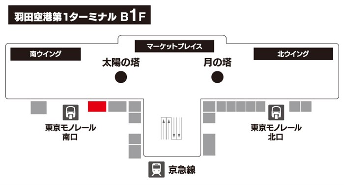 地址:東京都大田區羽田機場3-3-2 東京單軌列車羽田機場第1航廈車站 B1F