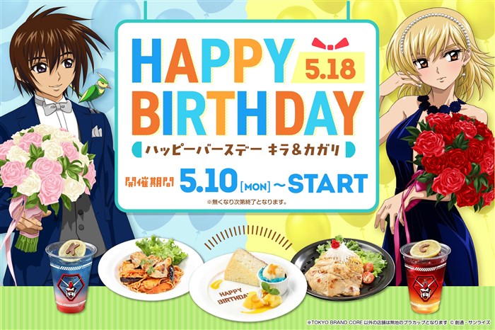 為了紀念『機動戰士高達SEED』的居拉・大和和卡嘉蓮・尤拉・亞斯巴於5月18日(二)迎接生日,「附贈數量限定生日圖卡的餐點」於5月10日(一)起登場。