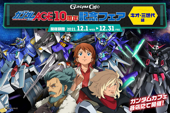 高達官方咖啡廳「GUNDAM Café」各門市和大阪的「GUNDAM SQUARE」,公開12月1日(三)開始的「機動戰士高達AGE 10週年紀念祭典 奇歐・三世代篇」的期間限定餐點。