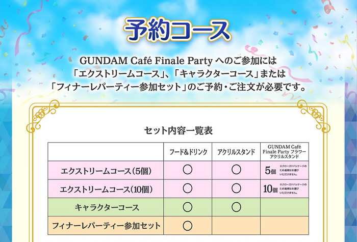 ※GUNDAM SQUARE的「Finale Party參加套餐」預約至2022年1月8日(六)11:59
