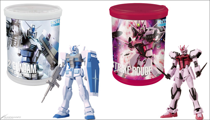 本商品「高達模型圓形BOX」是在附蓋子的巨柱型盒裝內附有模型和零食的套裝,共有「A:高達」和「B:突擊高達・紅」2種登場。