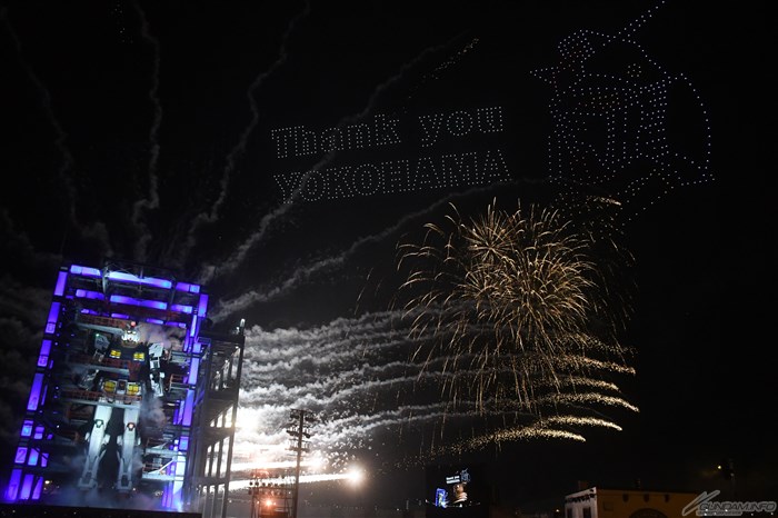 最後隨著高達40週年主題曲「THE BEYOND」,夜空浮現「Thank you YOKOHAMA」的文字,點綴“可動高達”的最後夜晚。