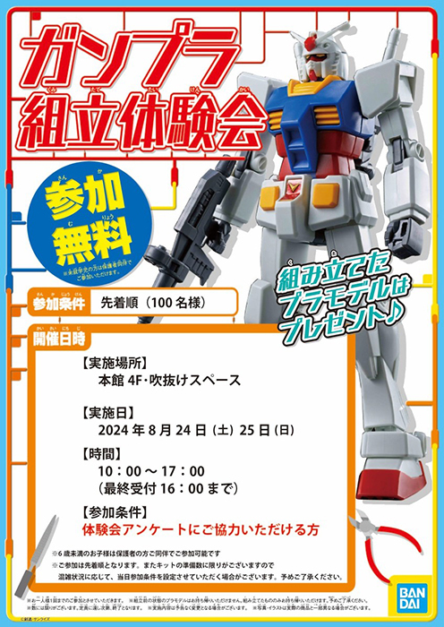 活動免費參加,人數以搶先制到100名為止。因為會贈送組裝好的高達模型,所以請務必藉此機會參加看看。