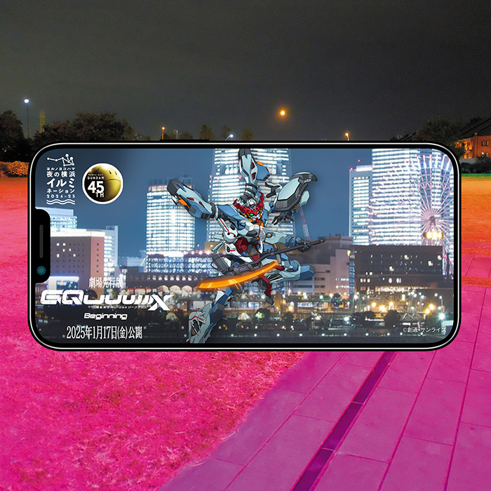 本企劃為紀念電影搶先場『機動戰士Gundam GQuuuuuuX -Beginning-』上映而特別舉行。高達系列的角色AR將會在「夜間橫濱點燈 2024-25」的舉辦活動橫濱春節祭2025及山下公園的Winter Wonder Park Yokohama2024點燈景點登場,只要有智慧型手機,無需安裝應用程式,任何人都能參加 AR 相片尋寶。