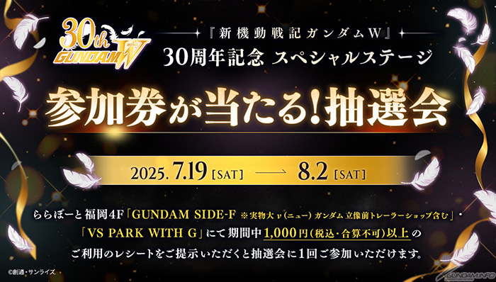 在以下抽獎中贏得大獎“高達W”30 周年特別舞台參與券的人將能夠參加。