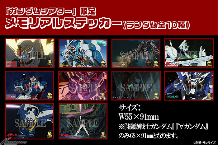 * 只有“機動戰士高達”和“ ∀高達”的尺寸為 68×91 毫米。