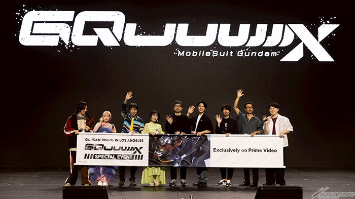 7 月 3 日星期四,座談會活動“高達,馬賽將站在地面上!! – 機動戰士高達 GQuuuuuuX 特別活動。 導演鶴卷和也、系列作曲家兼編劇榎氣道洋司、黑澤智世飾麻丘、土屋觀葉飾修 (阿修)姬、川田真司飾伊斯蘭教法公牛、申由紀飾夏亞和萬代南夢宮電影作品廠的緒方直弘上臺談論這部電影。
