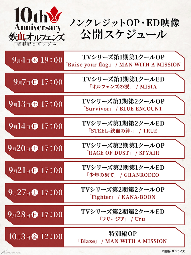 此外,非片尾OP&ED影片發布計畫也已啟動,從今天起,共9部OP、ED電影將陸續在YouTube高達頻道和《鐵血奧爾菲》系列官方X上公開。 讓我們也來看看這個。