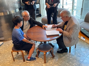 還有一個場景是他給“抽屜,安彥義和”巡迴展的第 100,000 名粉絲簽名!