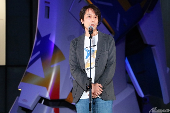 然後是來自富野導演的錄影感言,關於變成非常大尺寸的立像這點,「原本是打造成宇宙空間建築現場的作業用機器人,因此在這裡作業的操縱者有可能2~3天都關在這裡,因此就變成這麼大了」如此説明。接著還解釋了,設定上『機動戰士高達 馬沙之反擊』中「RX-93 ν高達」已經被破壞,這次的立像「RX-93ff ν高達」是從留下來的「RX-93 ν高達」設計圖進行重現,因此造型有所不同。