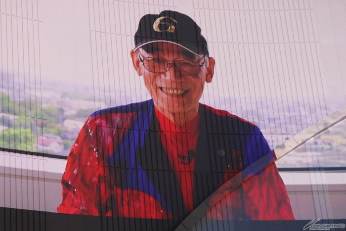 接下來為阿寶配音的古谷徹登場,對於「實物大ν高達立像」,笑著說道「很有魄力跟重量呢,就好像馬上會動起來一樣」「MS裡面我最喜歡的就是ν高達了」。