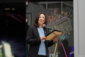 接下來登場的秋葉原車站站長保倉好之,「我想讓秋葉原成為"向世界展翅的秋葉原"。能夠在這個基礎之上迎接”TNST”,感到非常光榮。」以照看秋葉原街道的立場為開幕獻上祝福。