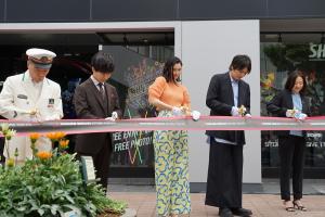 來賓問候結束後即開始剪綵儀式。來賓鈴木福、市川紗椰、濱田龍臣登場,將剪刀伸向畫有「TNST」標誌的綵帶。雖然一瞬間因為剪不斷而苦戰,最後依然順利剪綵,以笑容回應攝影機。