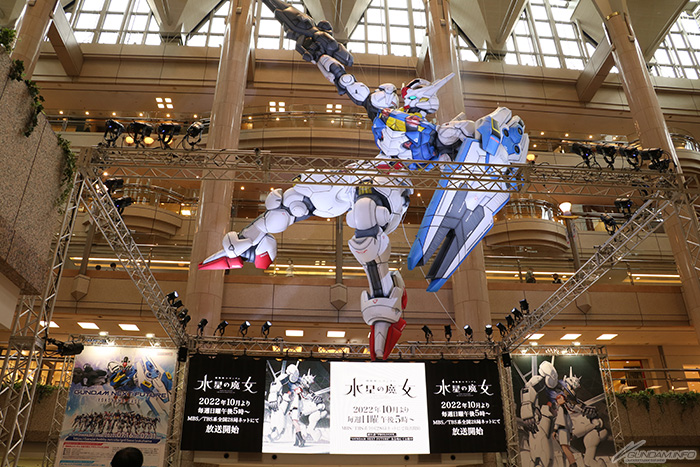 SAKATA SEED Garden Square首次展示了『水星魔女』主角機「風靈高達」全高約7m的氣球。每小時00分、30分還會藉由影片及燈光來做特別表演,所以請務必配合演出時間前往看看。