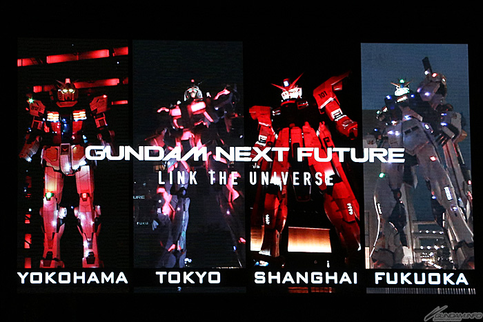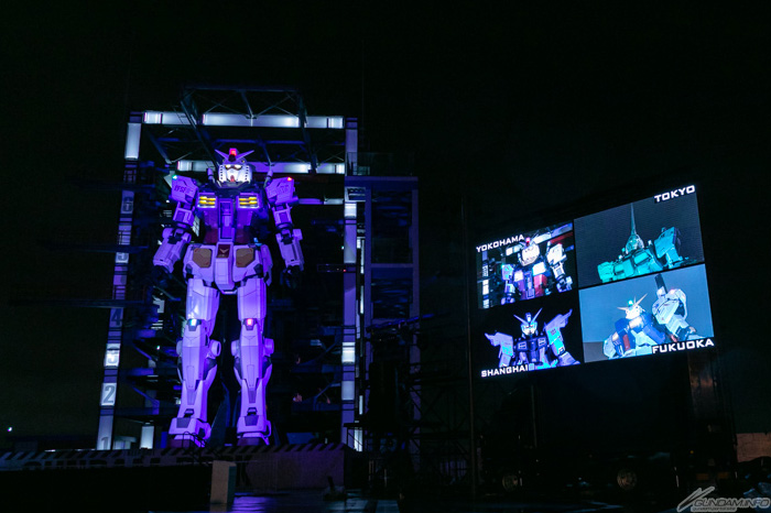 由橫濱的“可動高達”、台場的「實物大獨角獸高達立像」、上海的「實物大自由高達立像」以及福岡的「實物大ν高達立像」共4座立像,首次嘗試同時連結進行高達作品的BGM和鐳射演出,實施具有規模感的新演出。