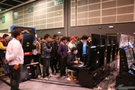 NAMCO BANDAI GAMES攤位上,展出了預計於4月上旬啟動的大型機台遊戲「機動戰士高達 EXTREM VS.」!日本目前也在定位測試中的最新作,一整日都是大排長龍!