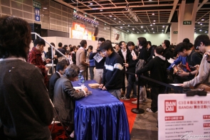 攤位内的舞台區實施了最新商品、香港版GUNDAM.INFO的介紹。另外還實施了大河原邦男的簽名會,與蜂擁而來的香港紛絲們熱烈地交流。(還用中文稱呼大河原先生為「老師」。)