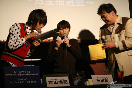 活動由急忙趕來的日本放送局旁白・吉田尚記擔任主持人迎接來賓,飾演阿斯蘭・薩拉的石田 彰和田己津央導演,舉行了現場錄音表演與機動戰士高達SEED 名台詞排行表結果發表等等內容盛況空前。
