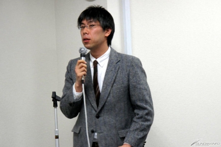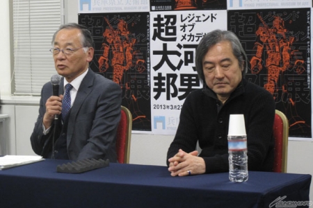 接著大河原述說了自己的簡歷,並透露他剛開始設計師的工作時,曾在神戸停留一個月進行研修,發生阪神淡路大地震之後,當時還有個復興象徵的團體「ANIMATION神戸」在,並且在那獲得了特別賞等等許多有關神戶的話題。關於展覽會本身,則表示「希望在展期當中可以有更多的人來參觀」。