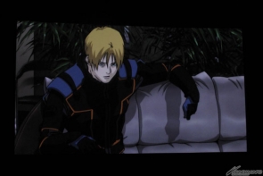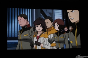在大家越來越期待的狀況下,上映開始前先由SUNRISE的小形尚弘製作人來向現場所有人問候,小形製作人表示在試映會開始之前,負責『高達UC』故事撰寫的福井晴敏就充滿感慨地說:「說不定在數十年前,我就是在這間電影院看“逆襲的馬沙”啊」。