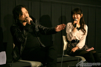 說到第08MS小隊,被問到「從發售當初到現在已經經過了16年了,請問覺得怎麼樣呢?」的檜山先生,非常驚訝地說道「這是怎麼回事,那時候的喜久子小姐才1歲左右嗎!?」,井上小姐則是以「這世界上有所謂“時空歪曲”的存在…、當時的我已經是個大人了喔。因為是容易動搖的17歲嘛!」調皮地回應。