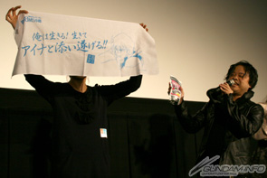 在上映前先舉辦的座談會,首先由檜山先生帶來遲了許久的新年招呼來宣告活動的開始。接著井上小姐登台並跟大家打招呼:「大家晚安。我是擔任艾娜・薩哈林一角的井上喜久子,17歲♪ 因為是很容易動搖的17歲,參加這麼晚的上映會可能會被抓去輔導,真是讓人緊張呢(笑)」,非常令人熟悉的自我介紹讓會場充滿笑聲。
