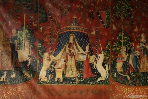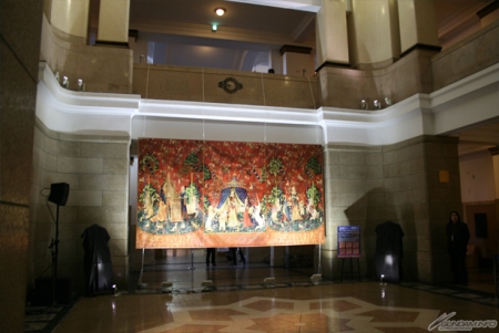 ▲穿過石造的厚重玄關後,在故事中讓人印象深刻的「貴婦人與獨角獣」迎接所有的來場者。首先是設置在大廳的螢幕中,會有“馬沙再世”弗爾.伏朗托的歡迎問候,以及從episode 1到episode 5為止的精華片段影像的上映。た。