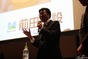 首先是說明了何謂「GIS」,並對詳細的內容作了解說:「這是將網路上搜索店家,調查交通情報等等已經為大家所使用,以地圖為基礎的電子情報。將都市開發或防災等各種的情報加諸於地圖上來做空間分析的技術」。