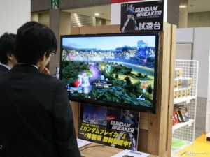 ▲以鋼普拉為形象製作的PS3用動作遊戲「高達破壞者」的試玩機台!6月發售以前搶先來試玩吧!